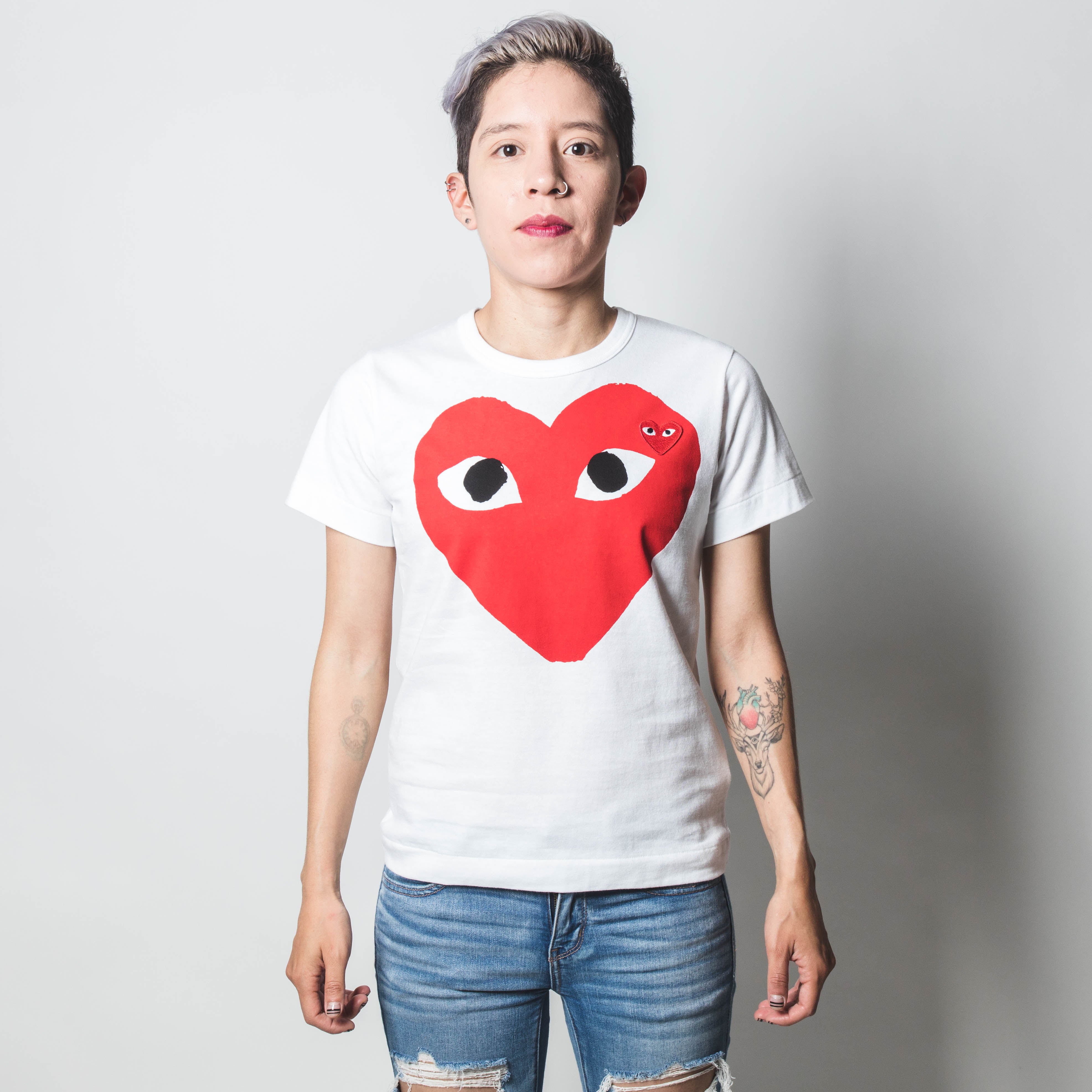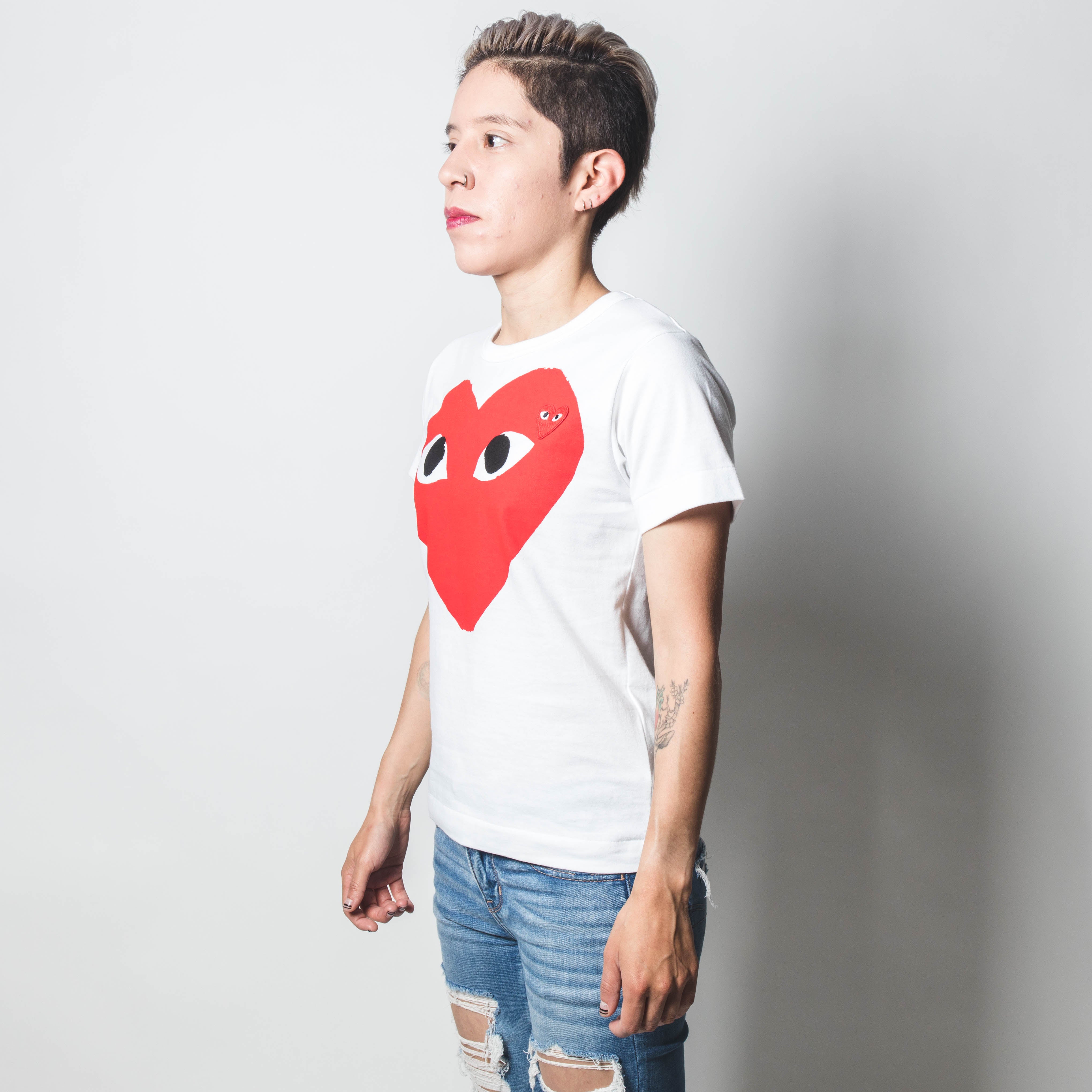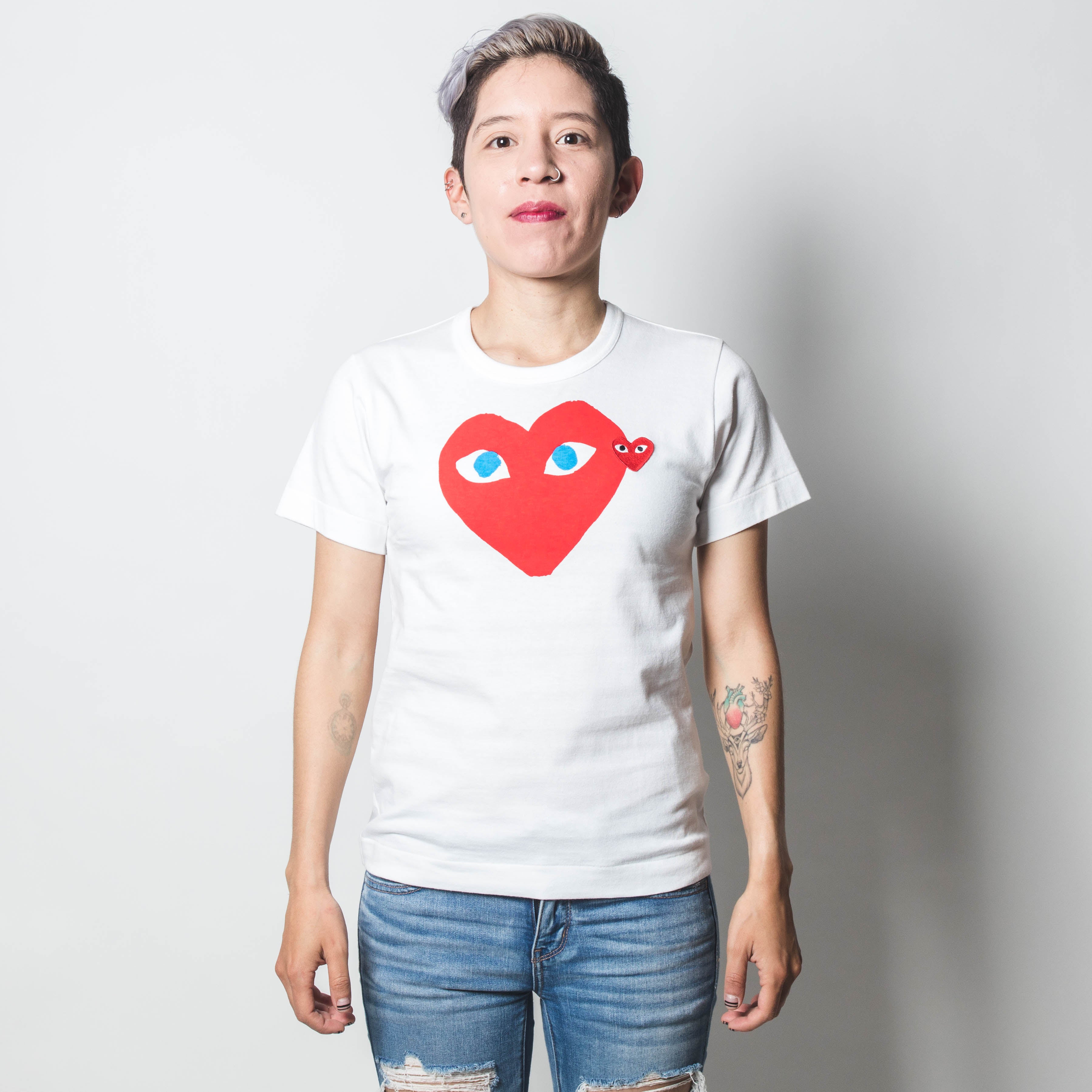 CDG PLAY Double Red Heart White T-shirt