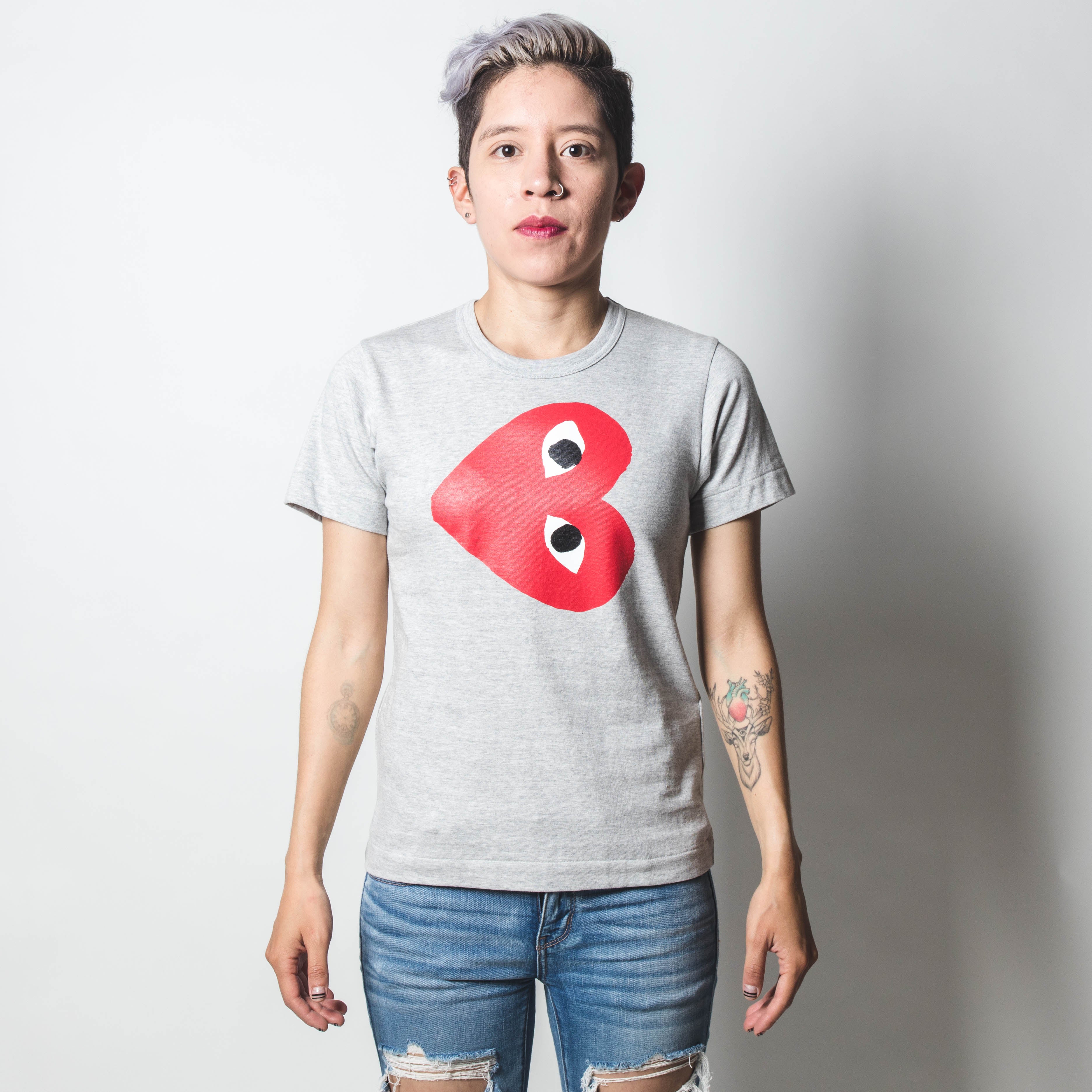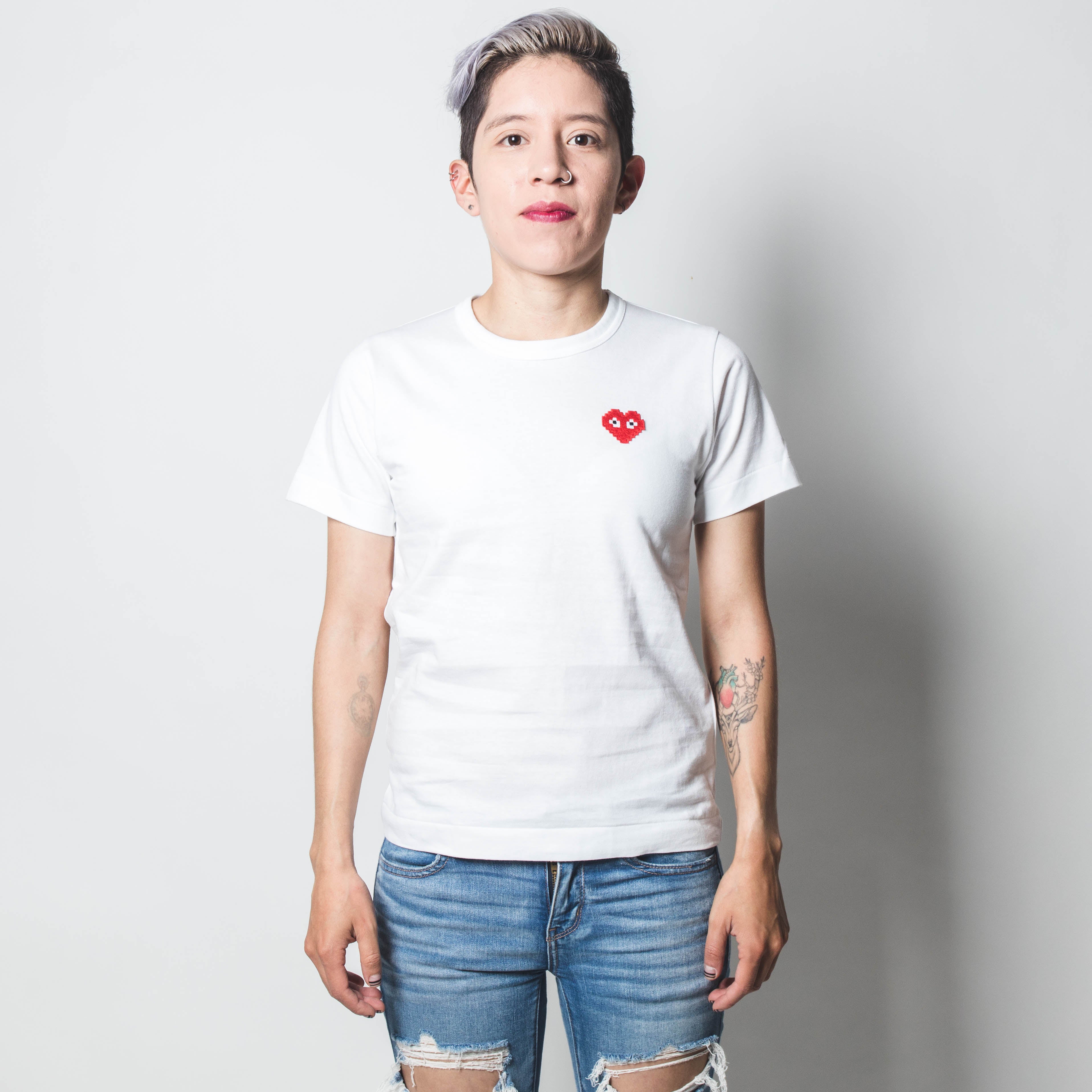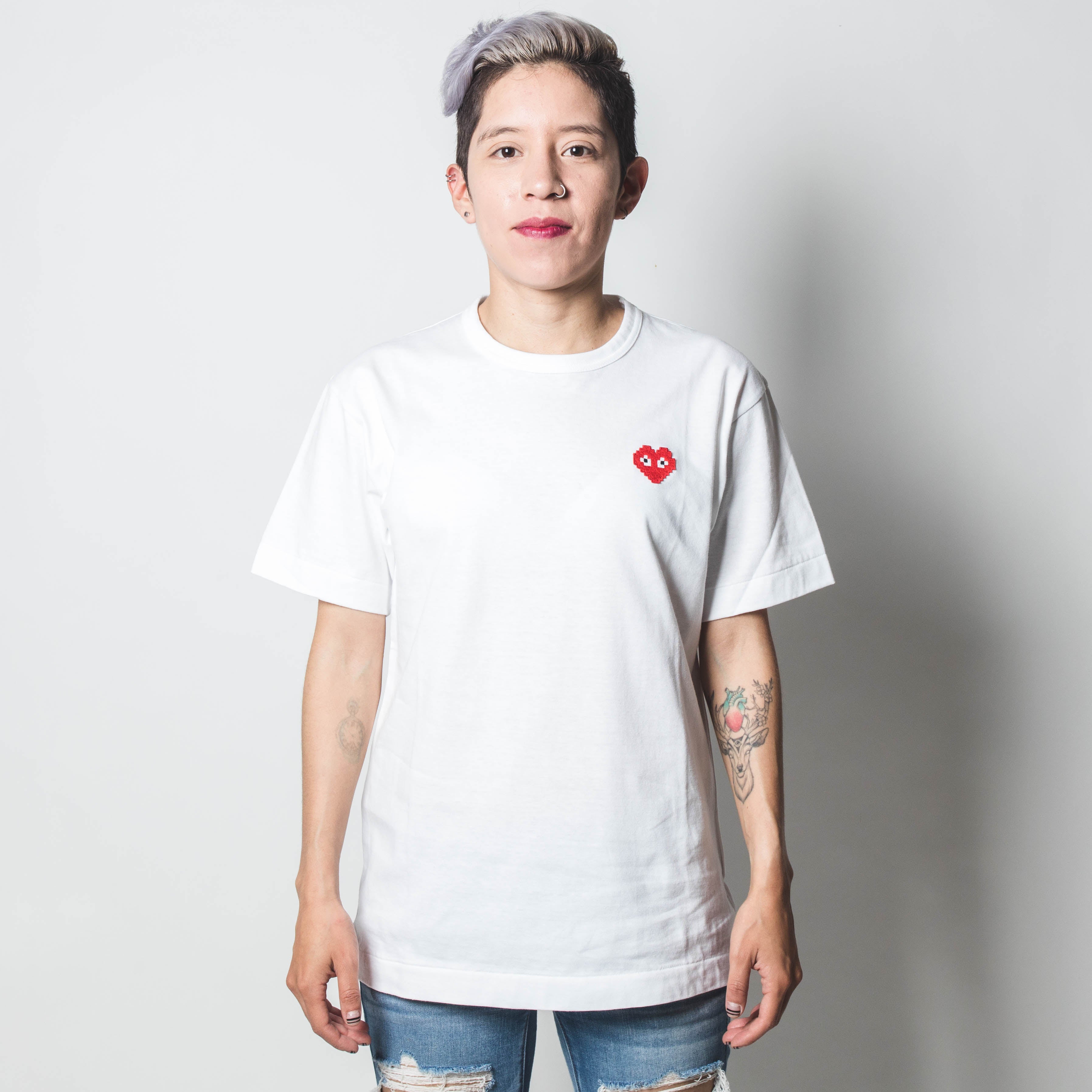 CDG PLAY Double Red Heart White T-shirt