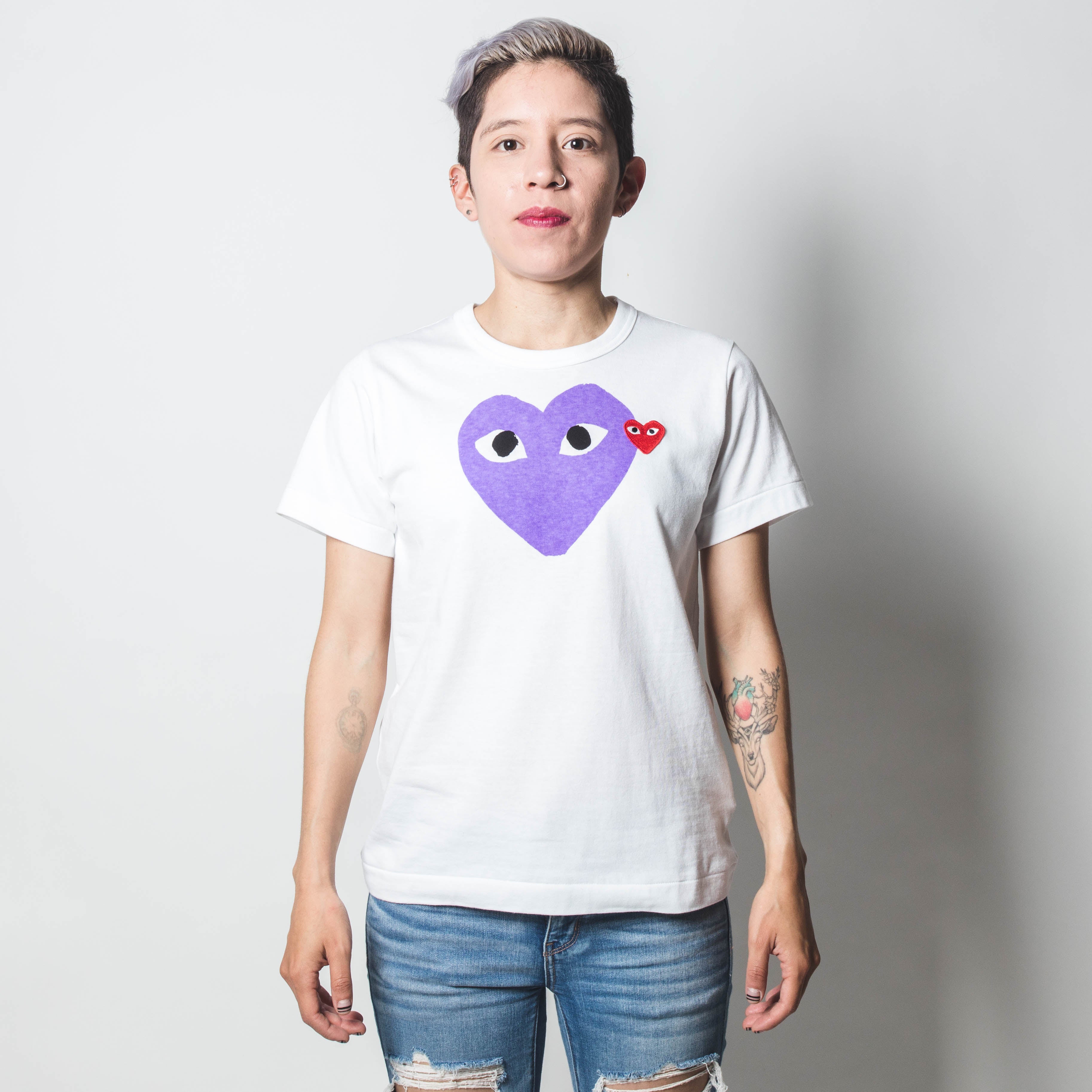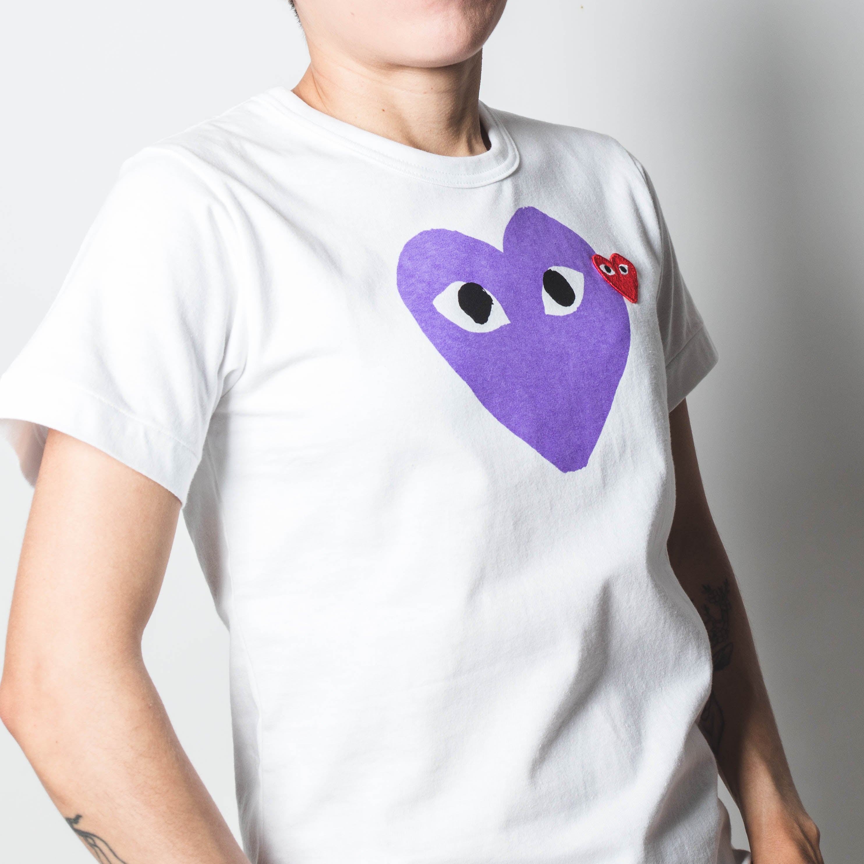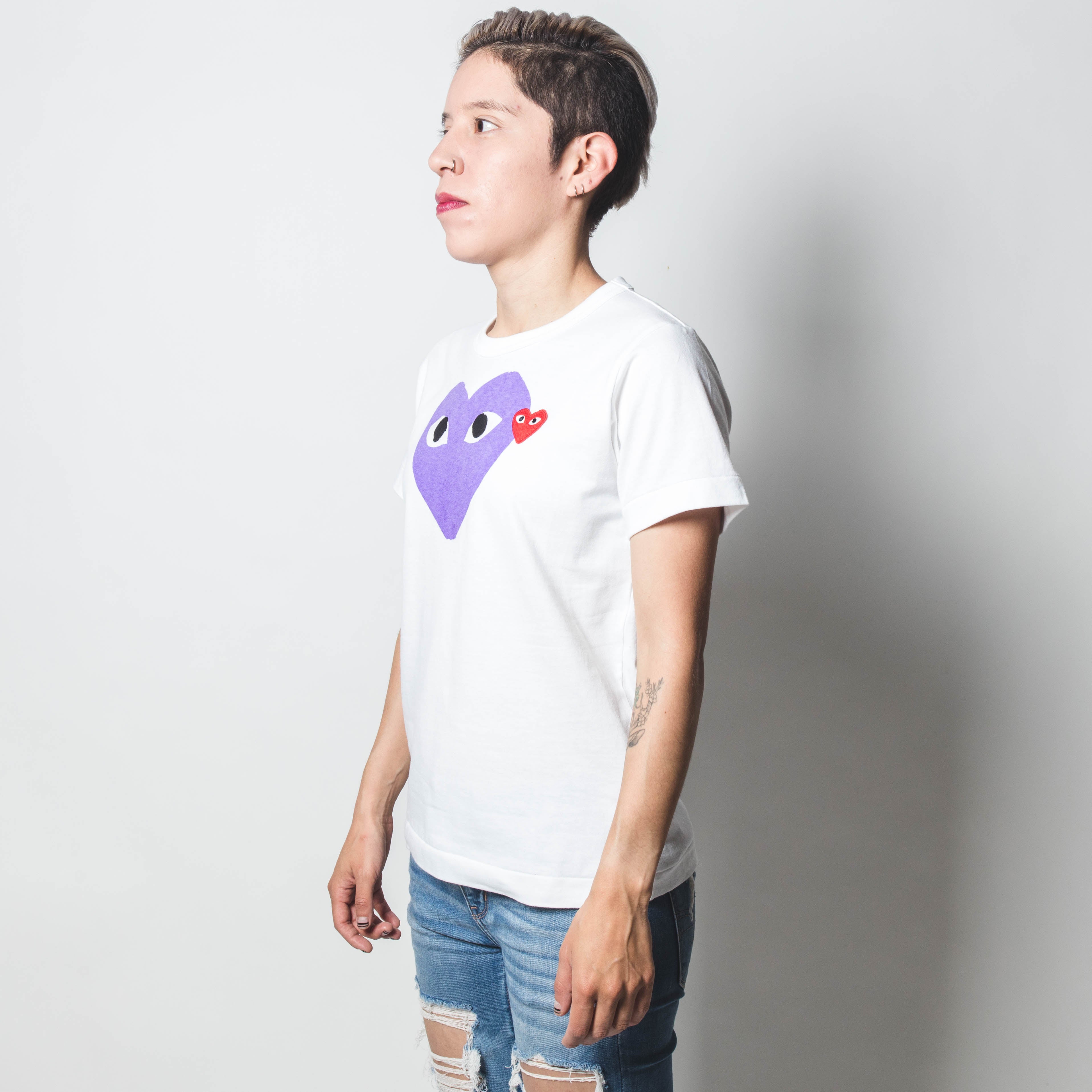 CDG PLAY Purple Heart Tee White