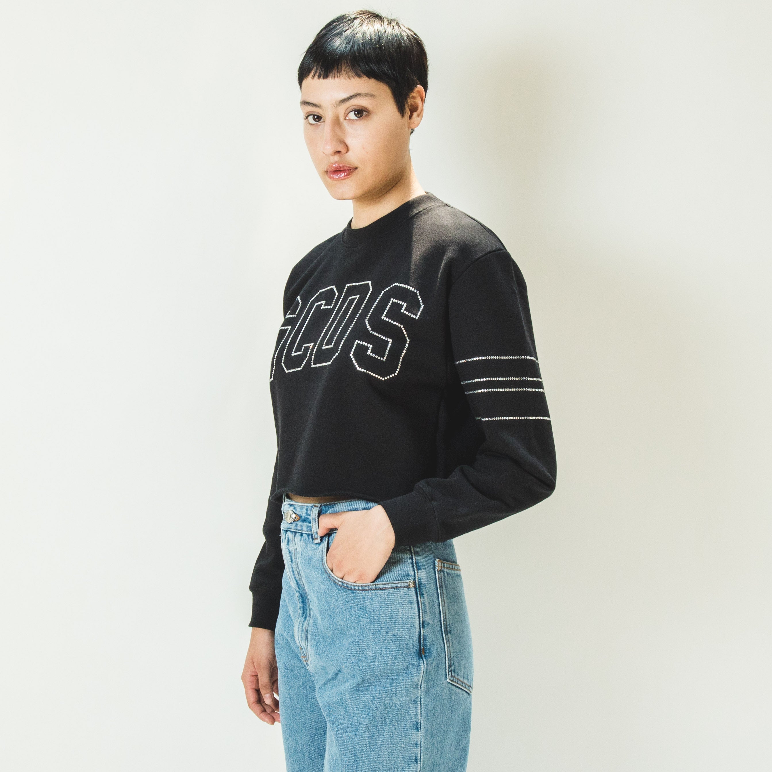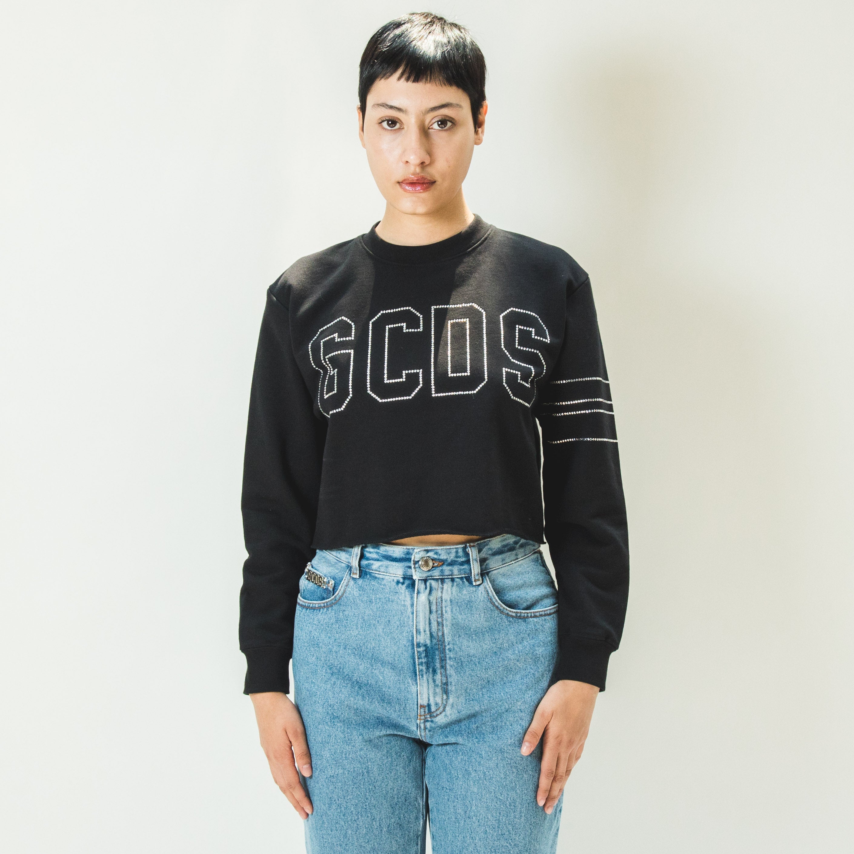 GCDS BLING CROP SWEATER BLACK