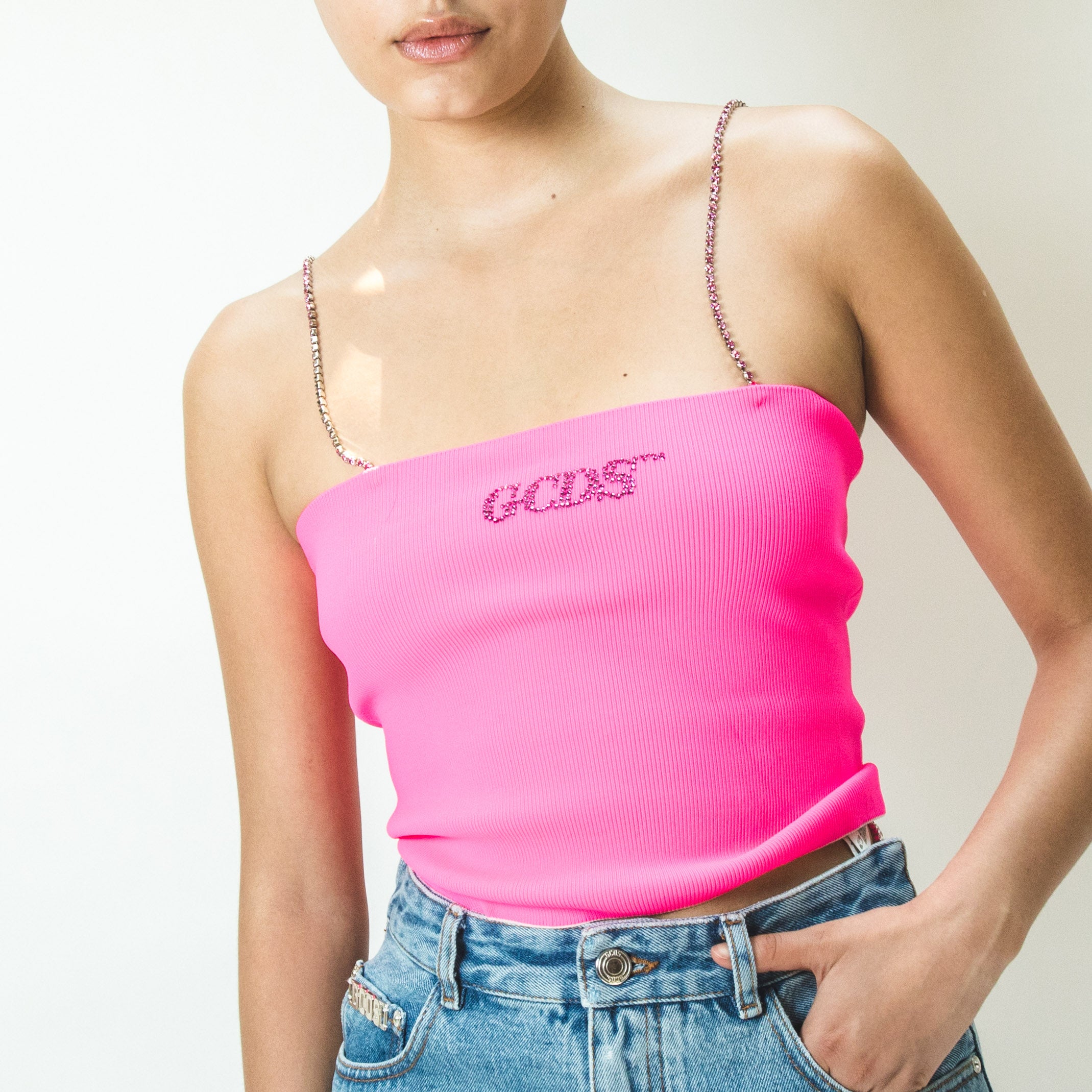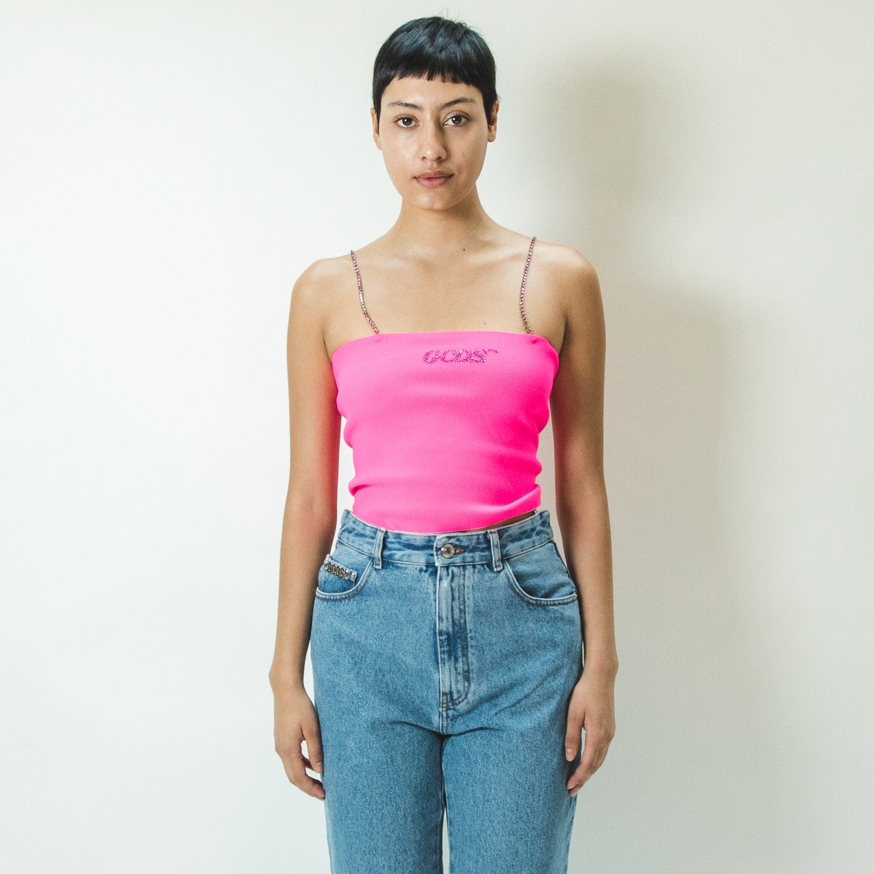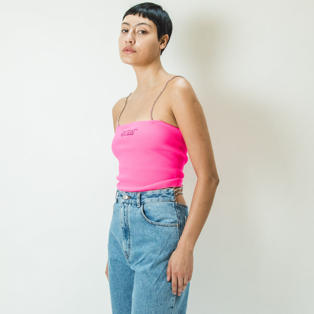 GCDS Crystal-Embellished Logo Tank Top Fucsia