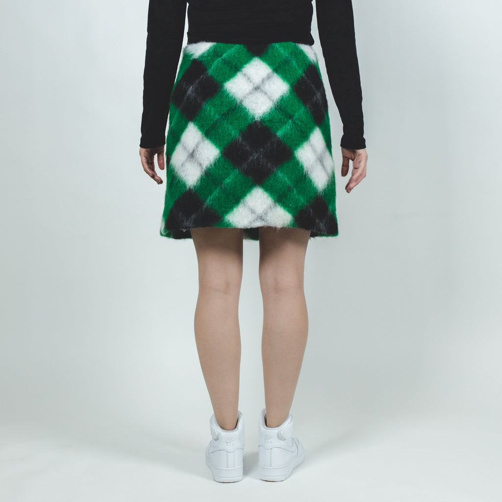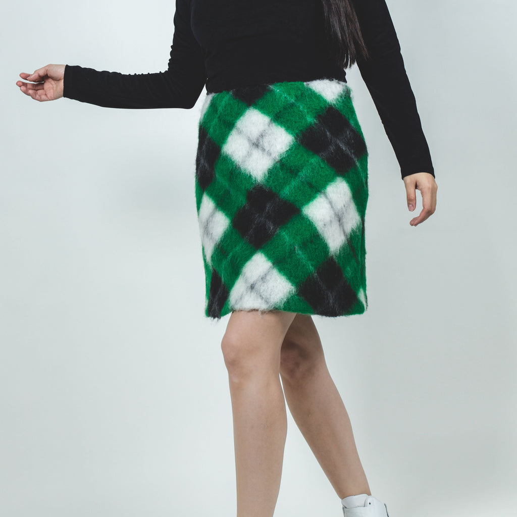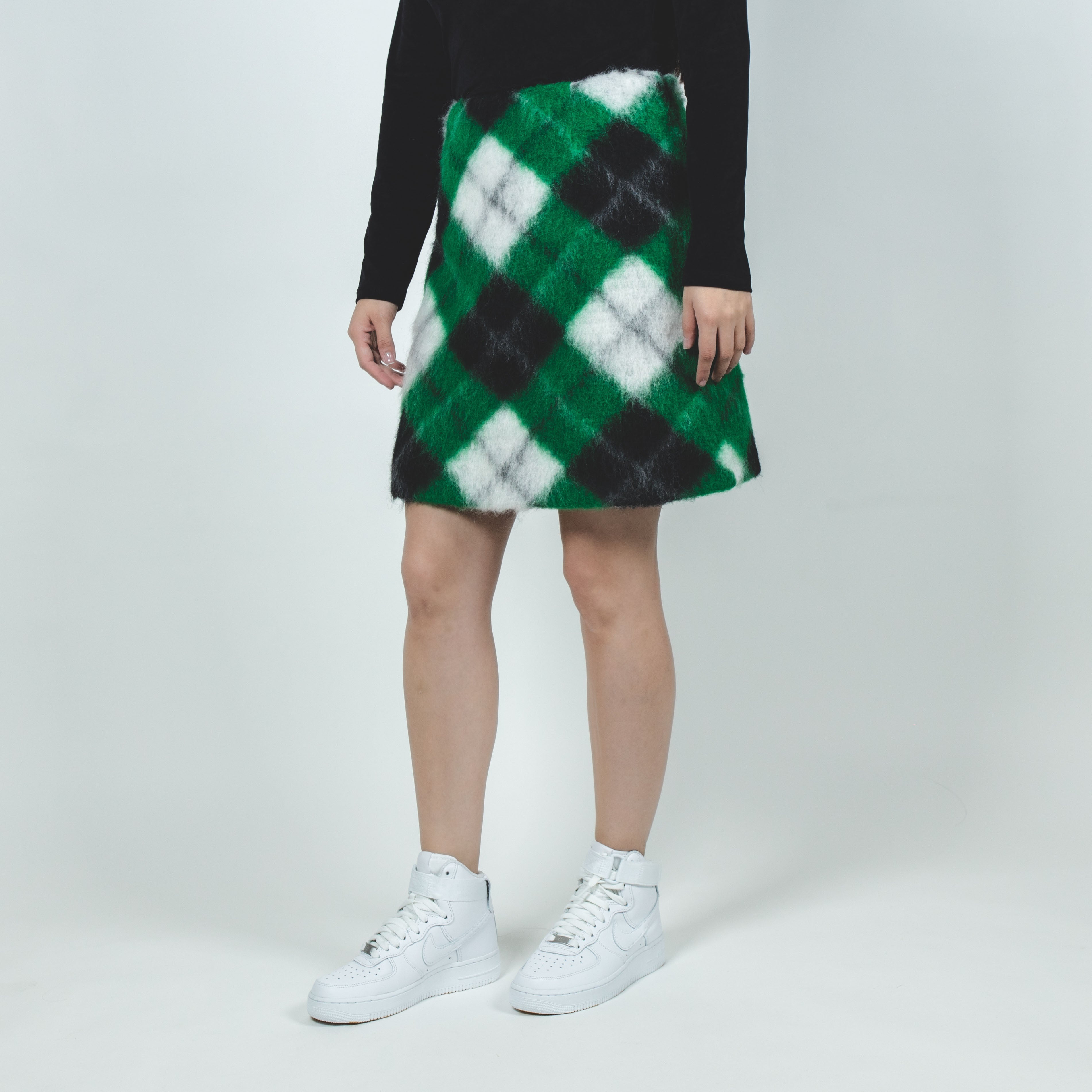 OC LONG HAIR CHECK MINI SKIRT EMERALD